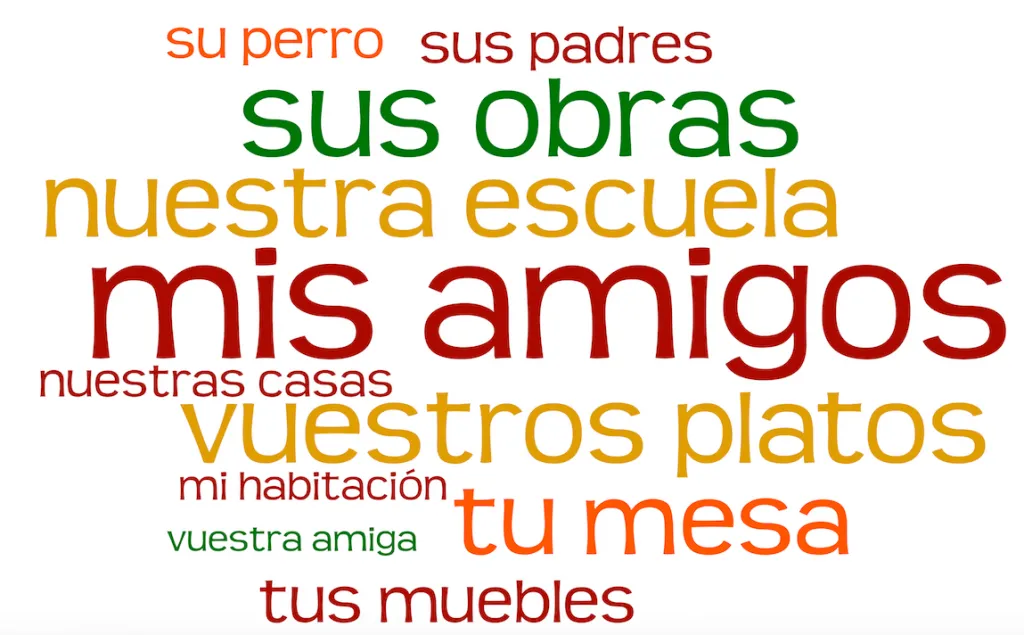 a) Kig på de spanske konstruktioner til højre. Kan du forklare de grammatiske regler for de possessive pronominer på spansk blot ved at forklare konstruktionerne?